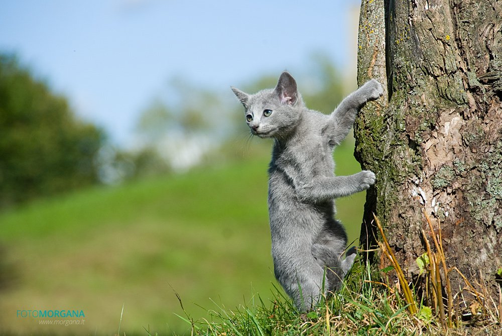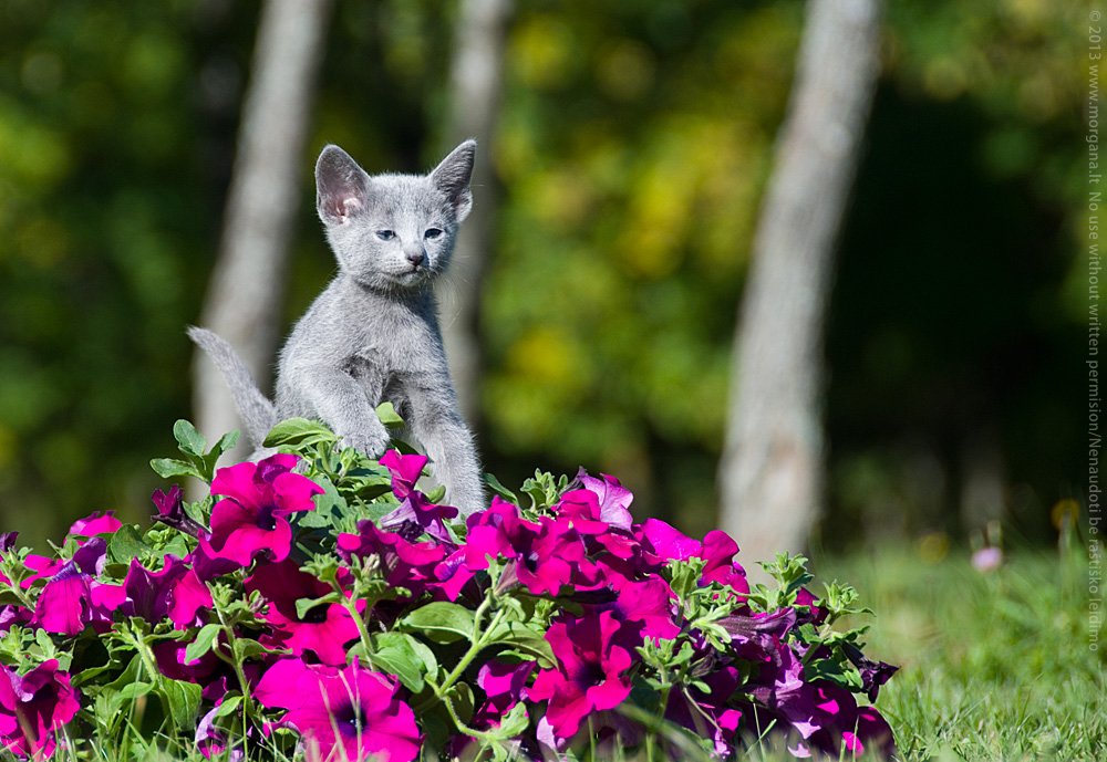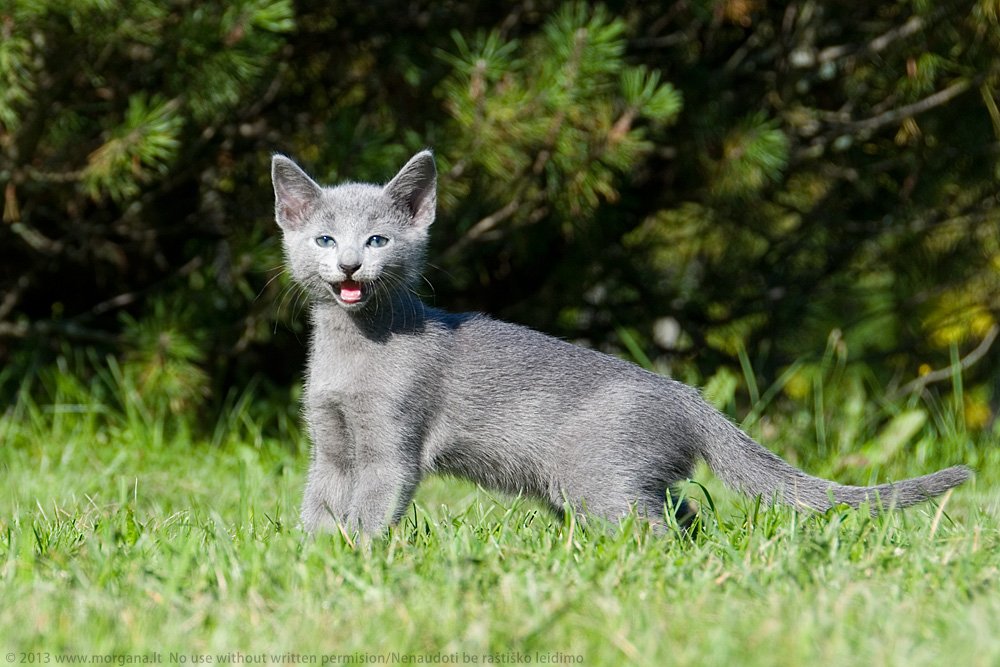 Jei gyvenate daugiabutyje, pasirūpinkite mažylio saugumu, nepalikite pravirų langų. Rusų mėlynieji be galo geri medžiotojai ir pamatę skrendant musę ar paukštelį, akimirksniu puola grobį! Labai dažnai tokie medžioklės ypatumai baigiasi liūdnai, kuomet kačiukas iškrenta iš devinto ar dvylikto aukšto.