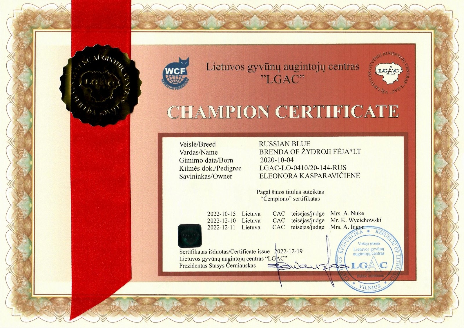 | CH Yummy Ain Blue Star | Laimur of Blue Star | RU*Swaldiphary Excalibar | GICH(WCF) Ljutomir Hilgvars Dunoe |