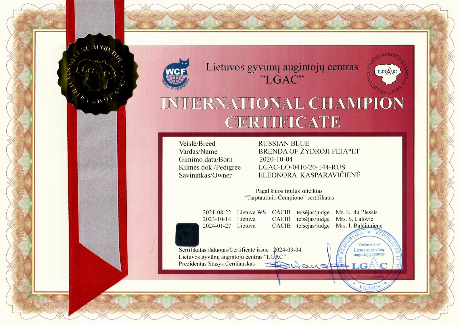 | ICH Iris of Žydroji fėja*LT | WCH LV*Sapphire Twilight Foma | IC N*Pomor Tsjekov Ostrovskij |