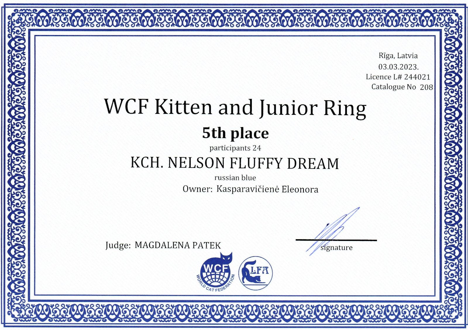 | Swan Blue Star | WCH Gustaw Ewjatar*PL |