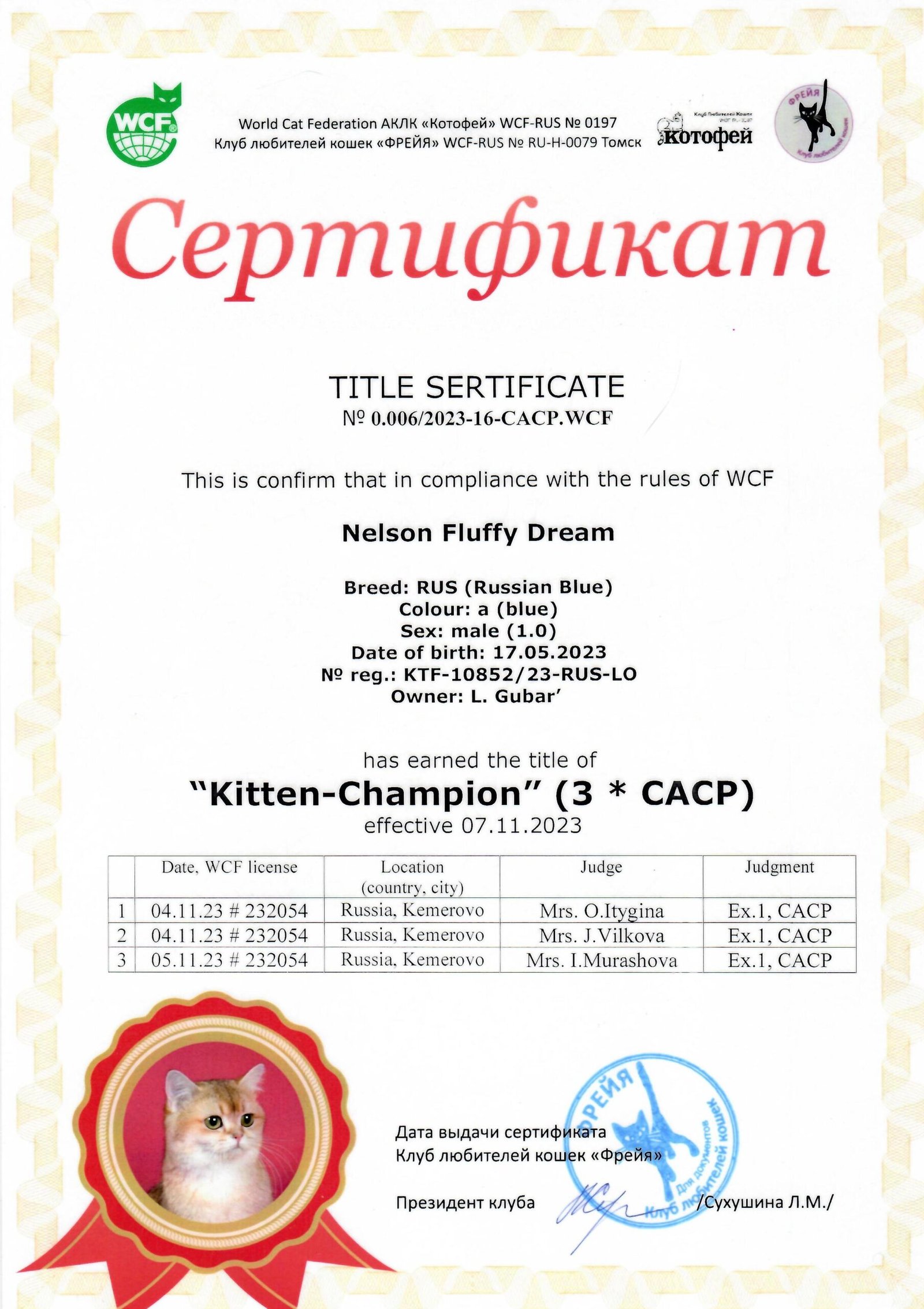 | Eva of Happy Song | CH Ladoga’s Vasiliy |
